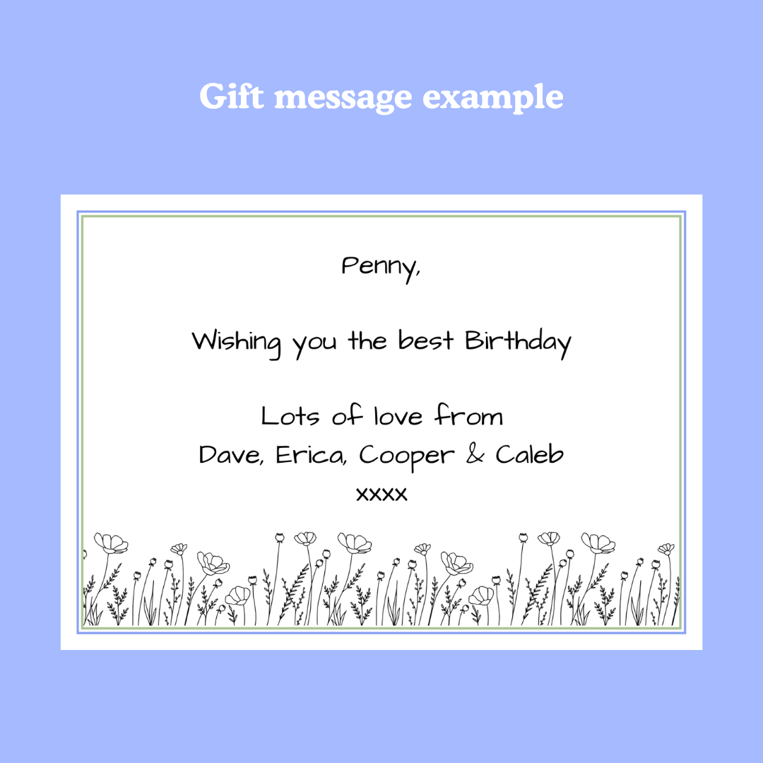 You can add a personalised message at checkout — we’ll print it and pop it in the box to make your gift even more special.